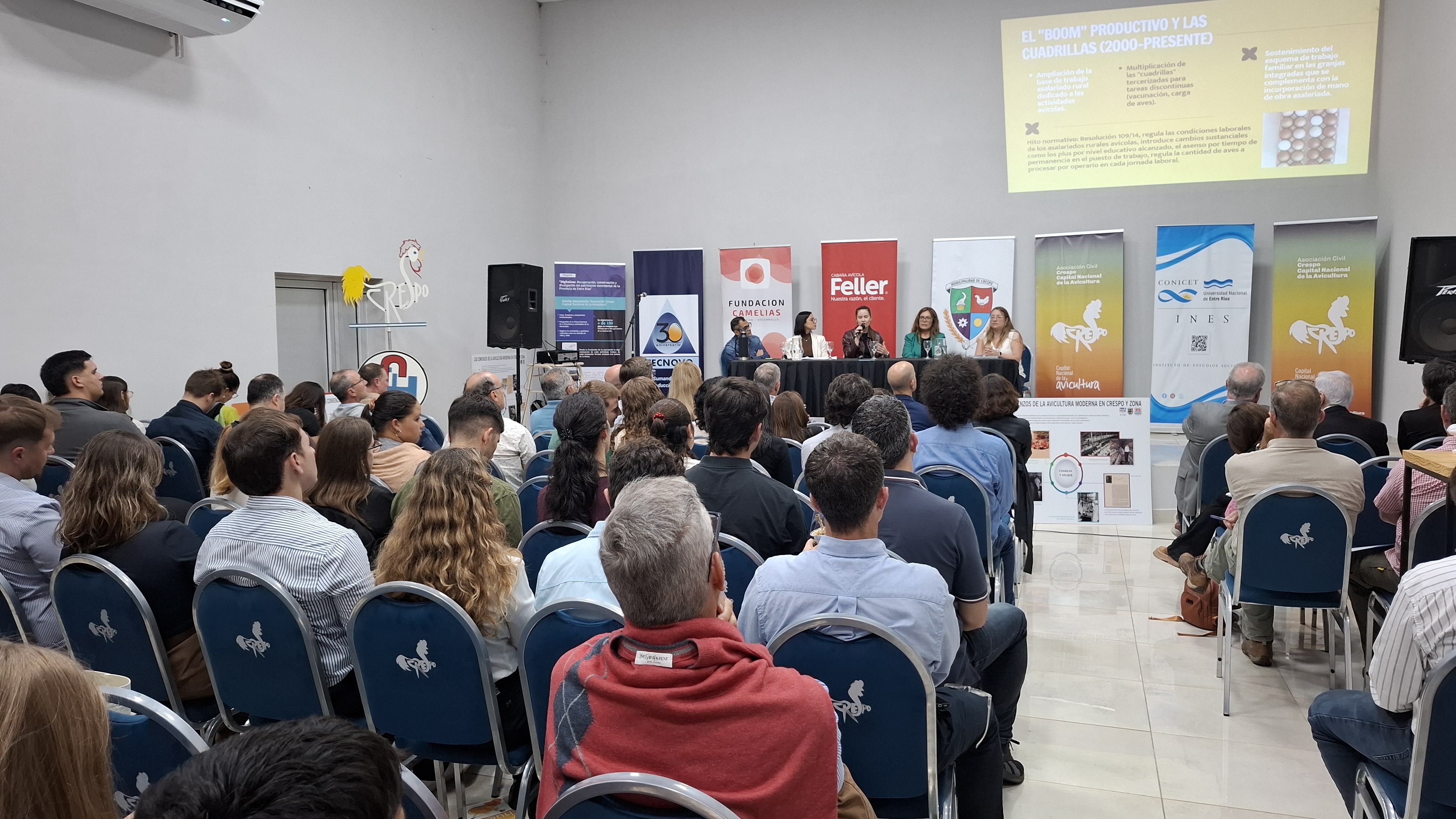 La primera jornada, realizada en la FCECO en Paraná, estuvo enfocada en el análisis de los problemas y perspectivas de la producción avícola en Argentina y el mundo. A través de mesas redondas, se abordaron también los procesos de innovación tecnológica y las transformaciones productivas. También se incluyó un espacio dedicado a la memoria y el patrimonio de la avicultura, que puso en valor la historia de esta actividad en Entre Ríos.
